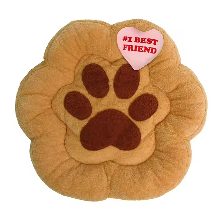 Customized Fancy Cute Brown Plush Dog Paw Shape Pet Mat