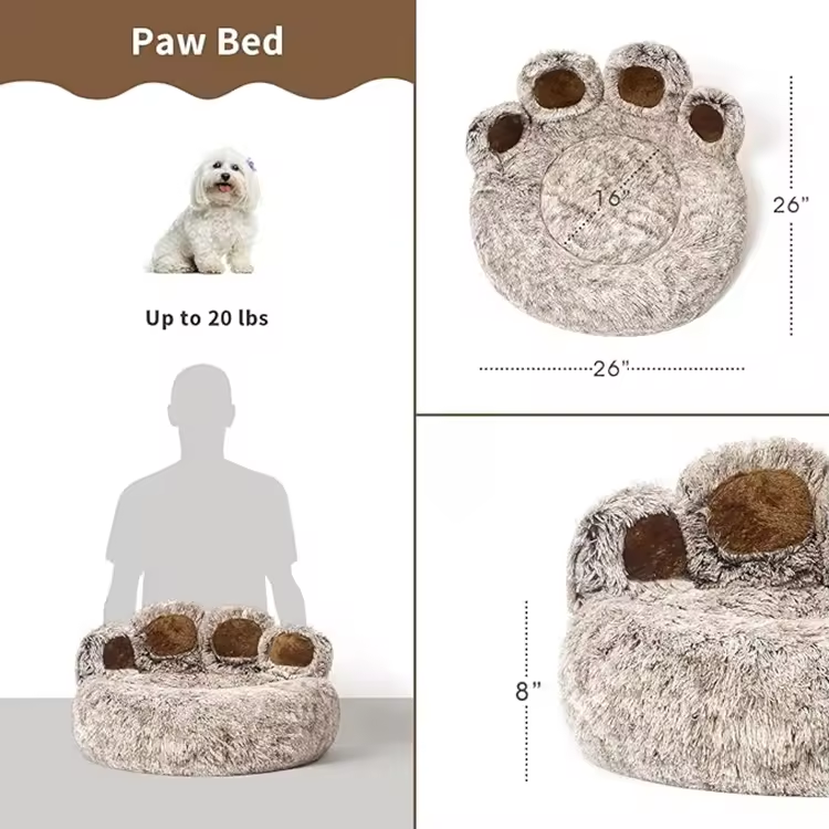 Customized Portable Soft Brown Plush Paw Round Dog Bed