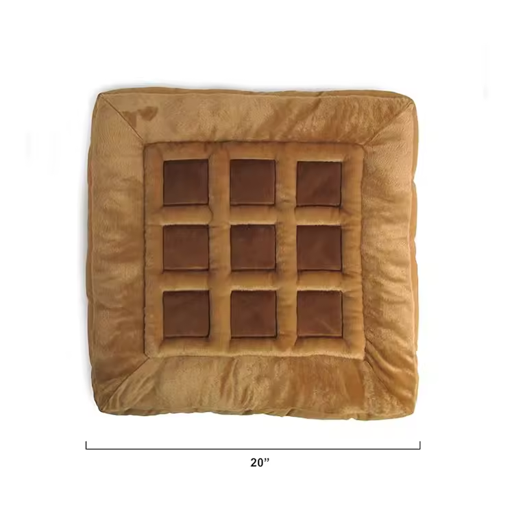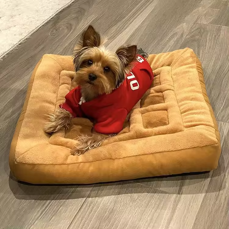 Fashion Cute Brown Waffle Shaped Pet Mat With Chicken Drumstick Plush Toy