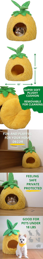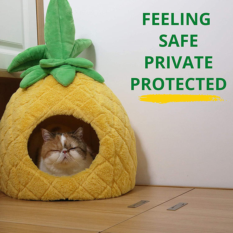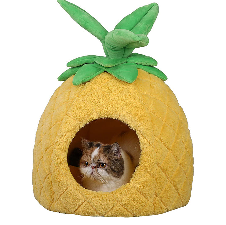 Luxury Cartoon Plush Pineapple Foldable Pet Cave Bed For Travel Outdoor