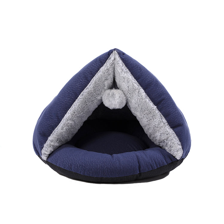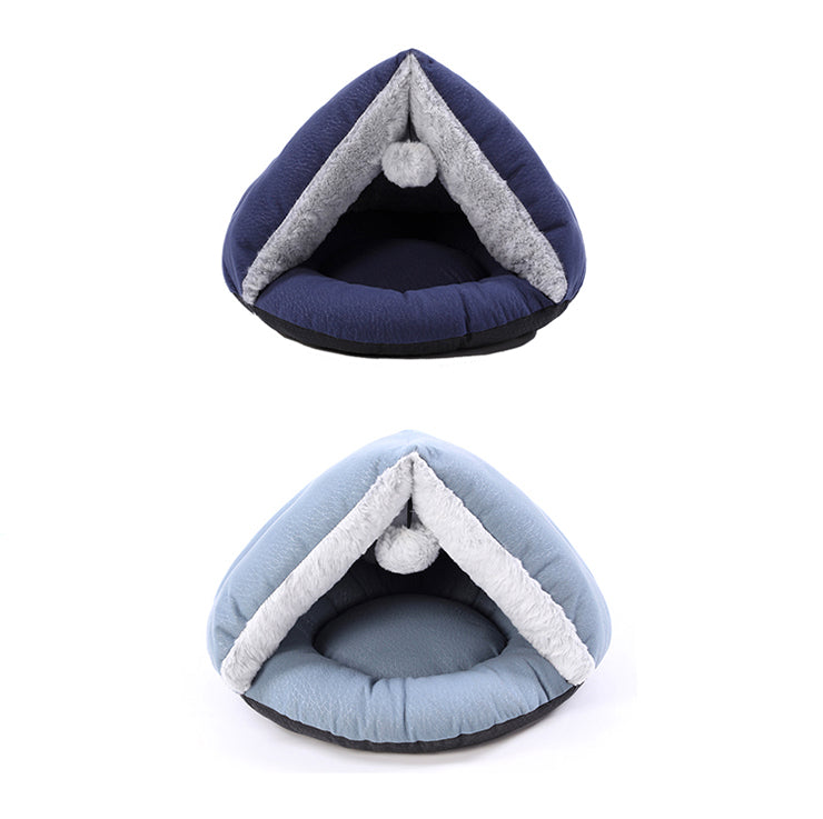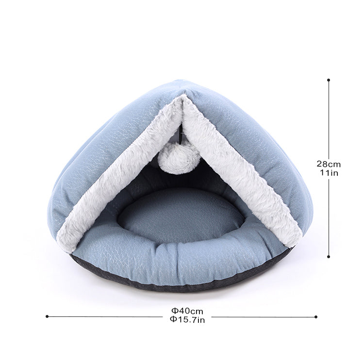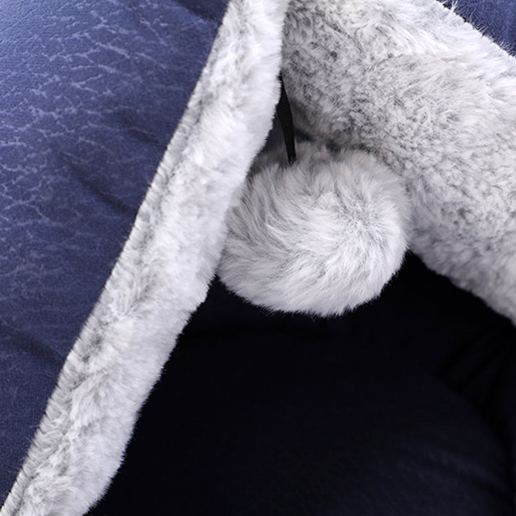 Customized Luxury Blue Tent Style Semi-enclosed Pet House With Fur Ball