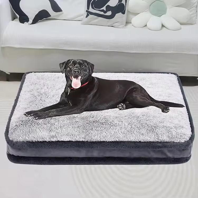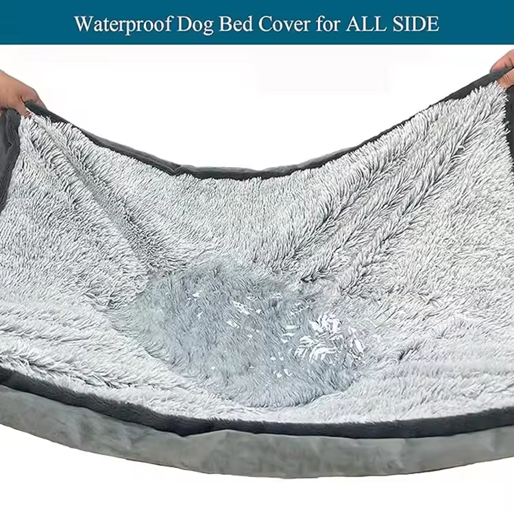 Custom Luxury Dark Grey Plush Detachable Wash Cushion Bed For Dog
