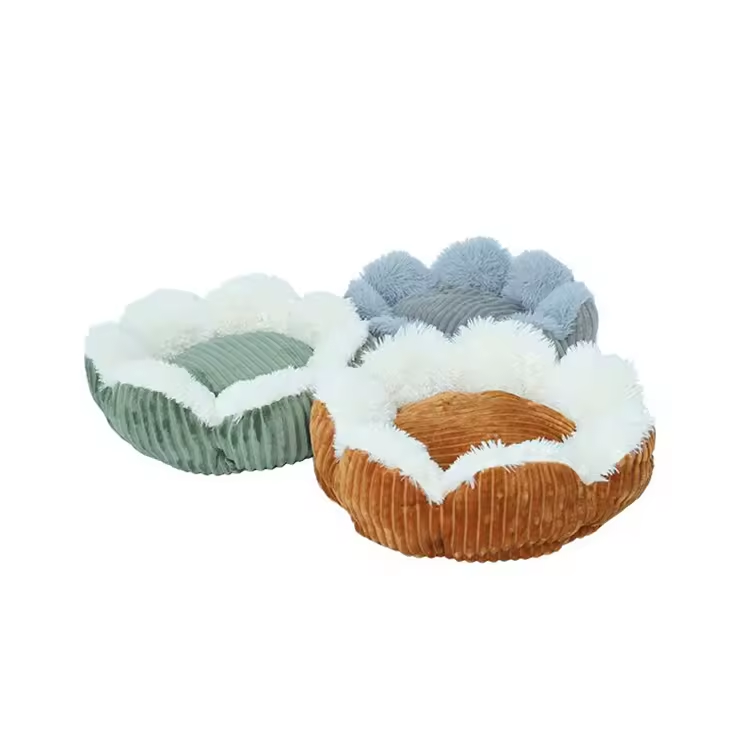 Eco Friendly Machine Washable Corduroy Plush Round Dog Bed