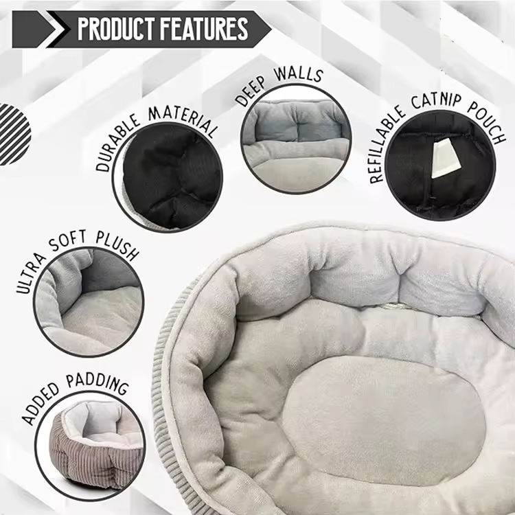 Luxury Deep Sleep Corduroy Oval Foldable Pet Bed