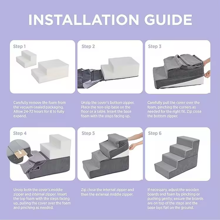 Custom Foldable Pet Steps Portable Ramp Stairs For High Bed