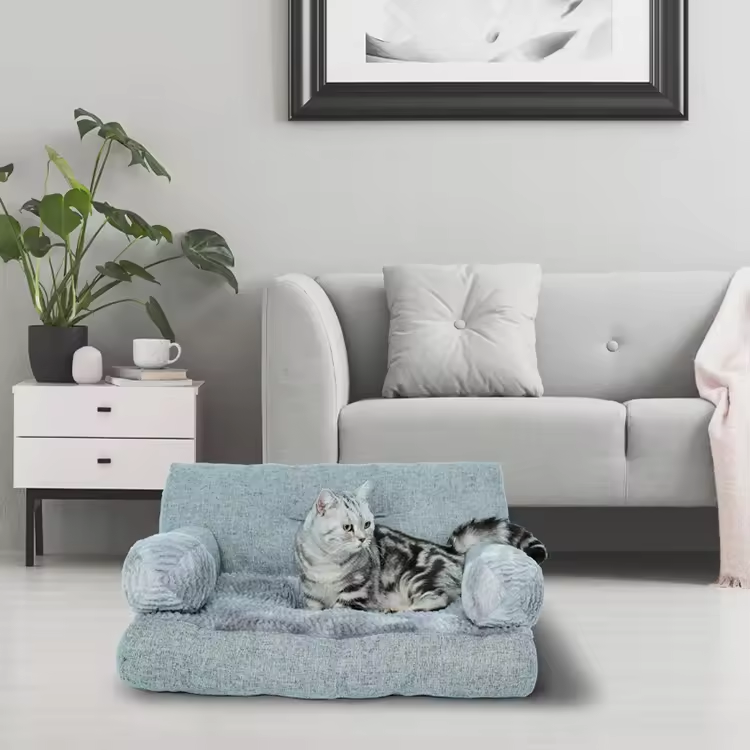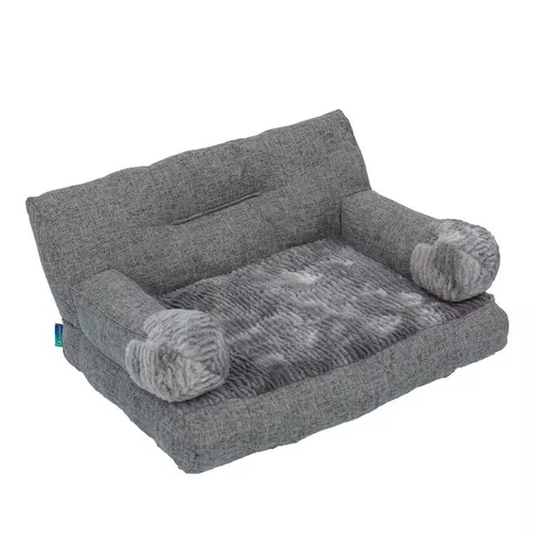 Custom Grey Plush Rectangle Orthopedic Dog Sofa Bed Outdoor Travel