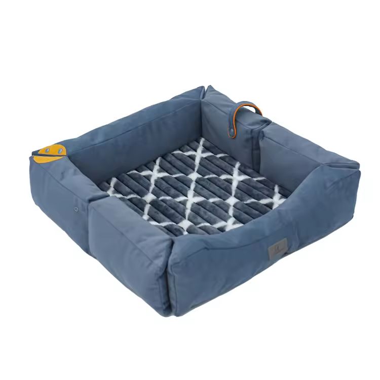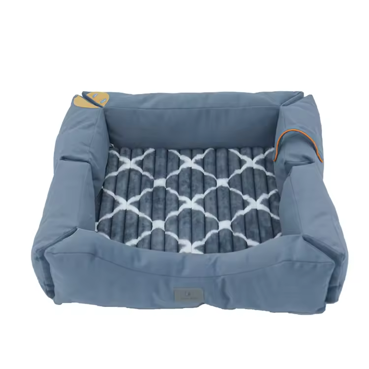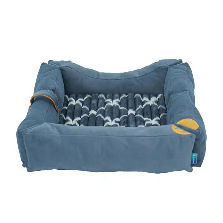 Customized Portable Blue Short Plush Rectangle Pet Bed