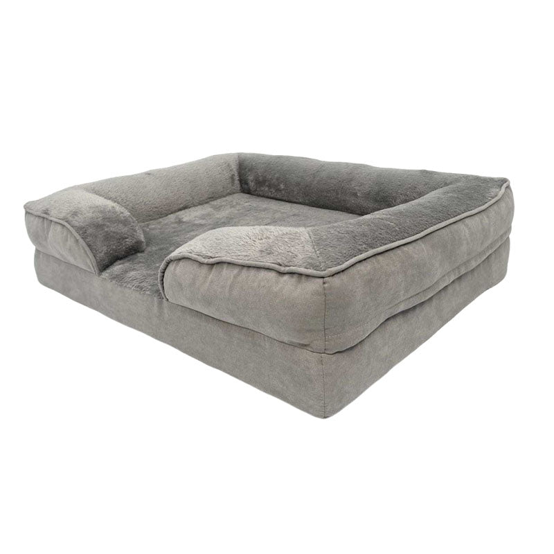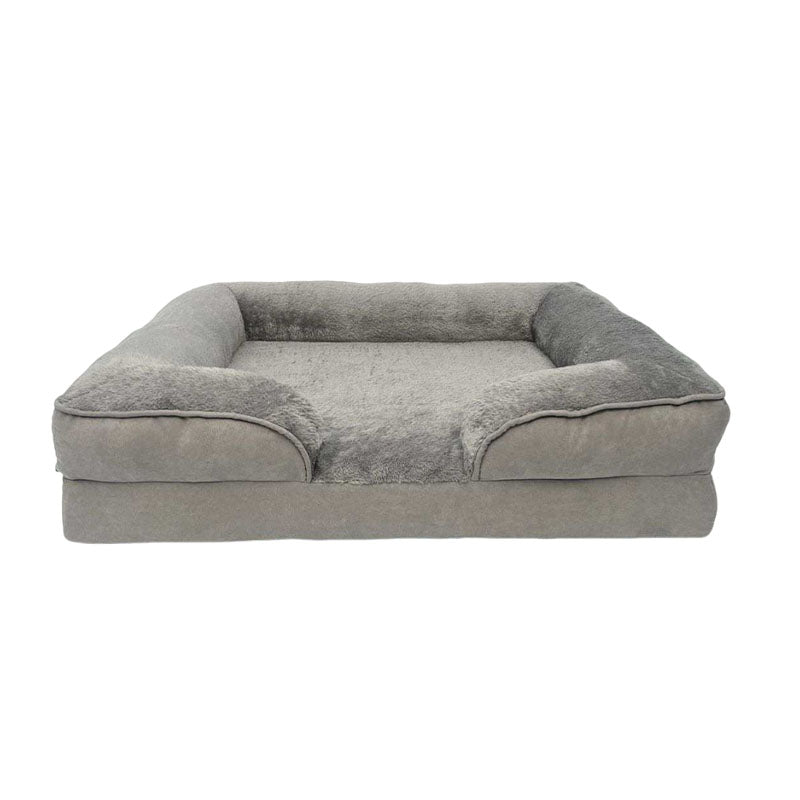 Orthopedic grey chenille cooling gel and memory foam pillow pet bed