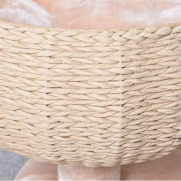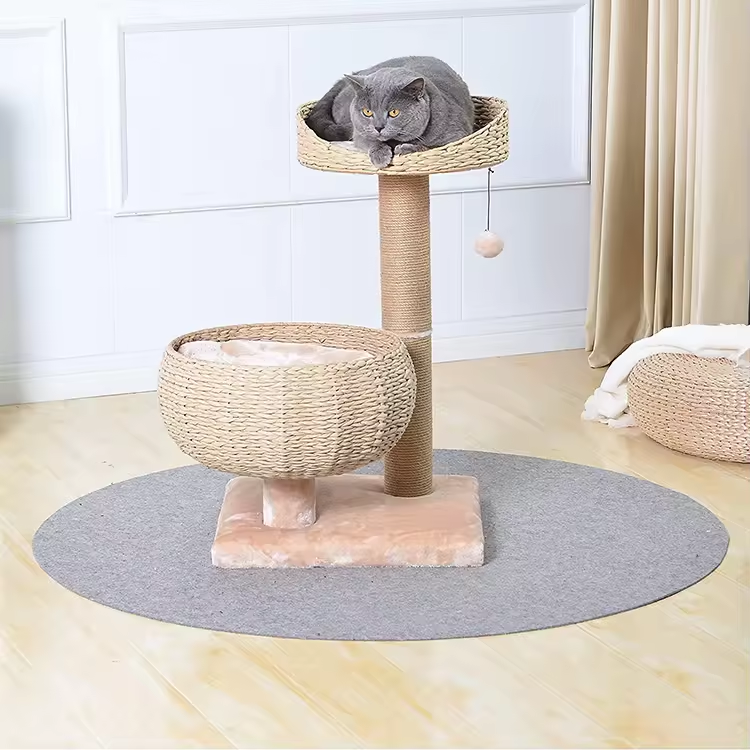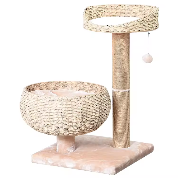 Custom Beige Rattan Cat Tree House Tree Tower