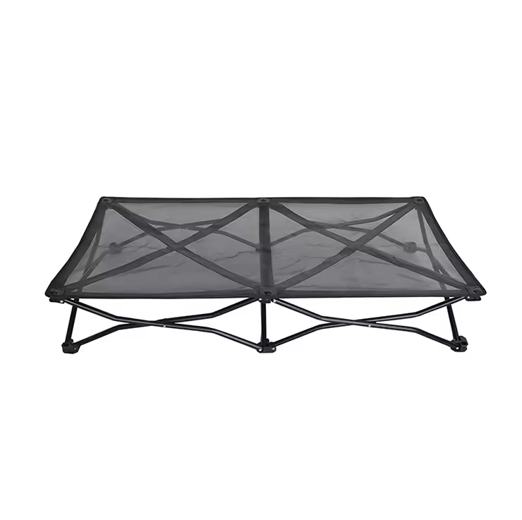 Custom Black Breathable Mesh Foldable Elevated Pet Camping Cot Outdoors