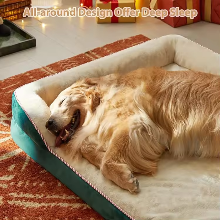 Custom Dark Green Velvet Breathable Pet Dog Bed