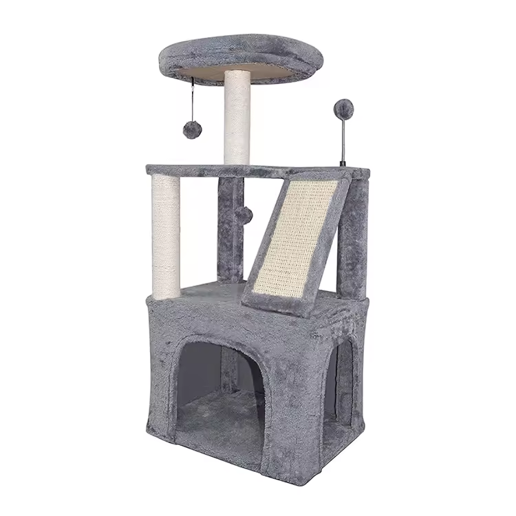 Custom Grey Velvet Simple Cat Tree Tower Best Seller Scraper For Cat