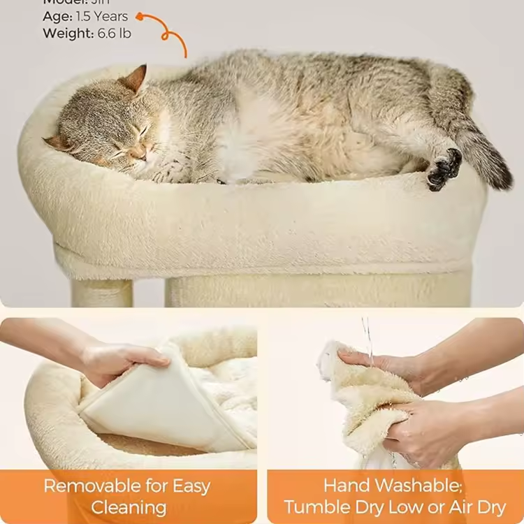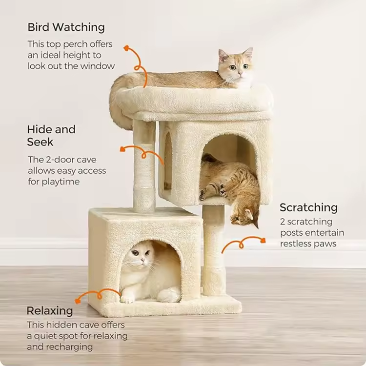 Custom High Quality Beige Plush Creative Cat Tree Tower