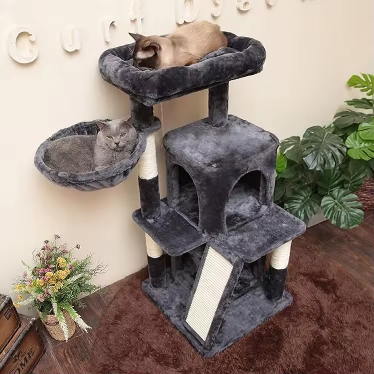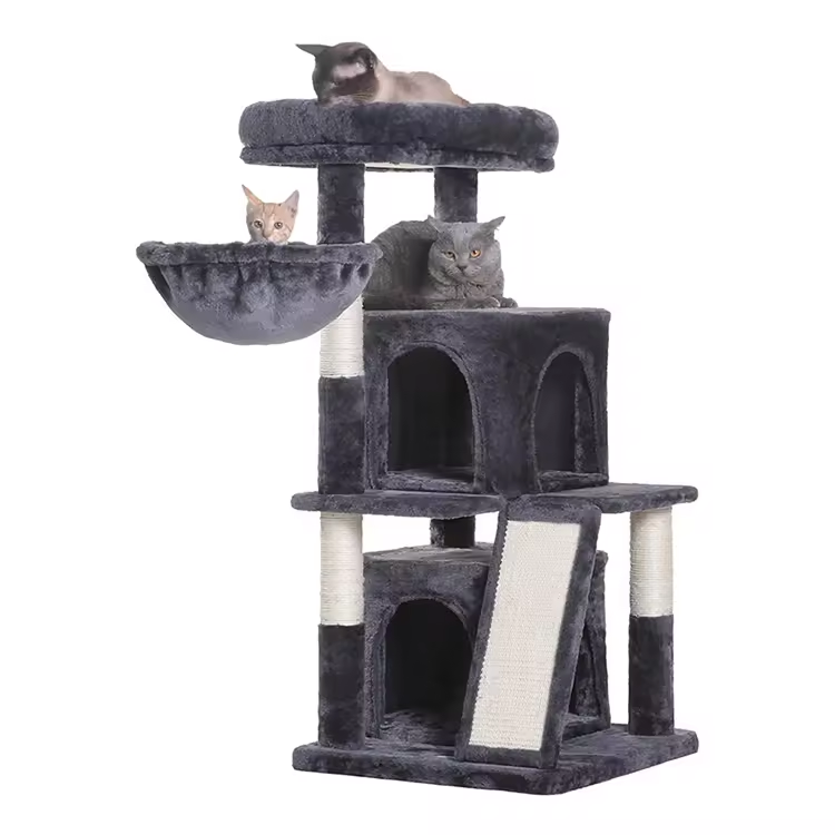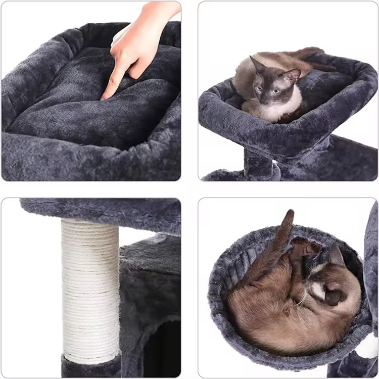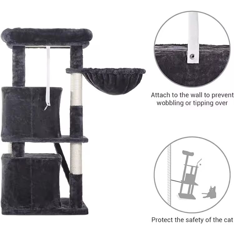 Custom High Quality Black Plush Multi-level Cat Scratching Tree Tower