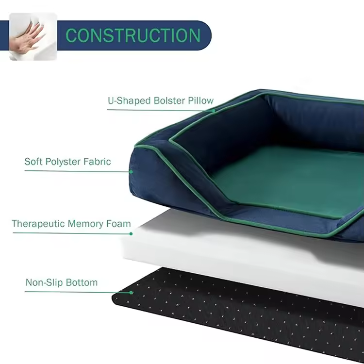 Custom Navy Polyester Fabric Orthopedic Pet Bed Mattress