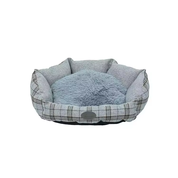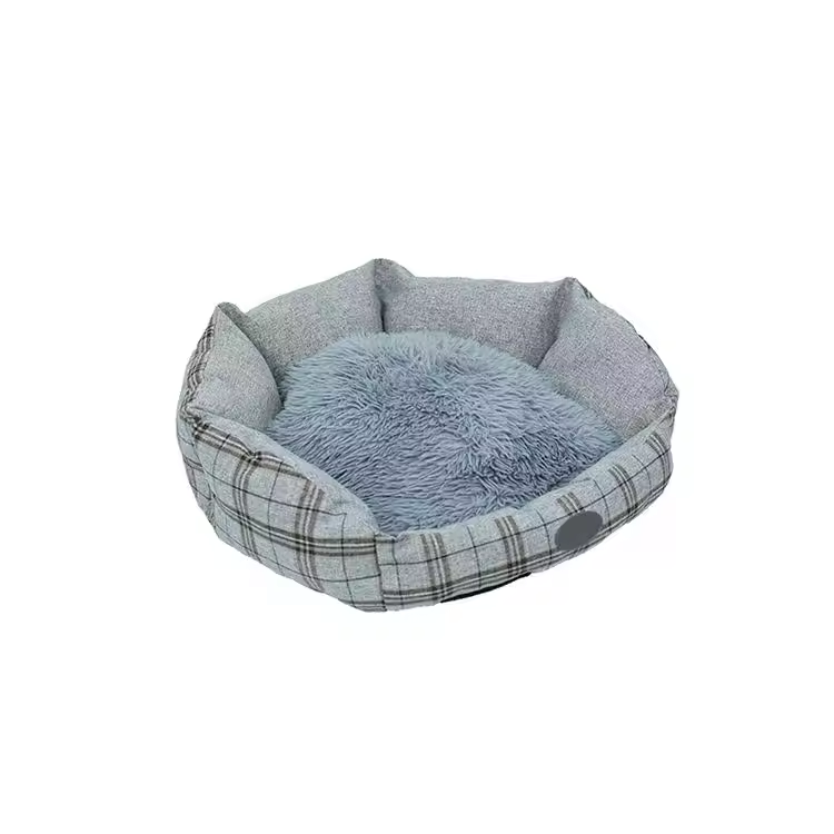 Custom Top Selling Luxury Soft Plaid Plush Round Pet Bed