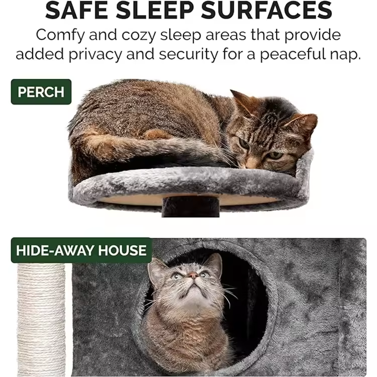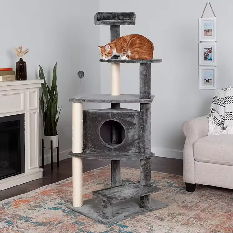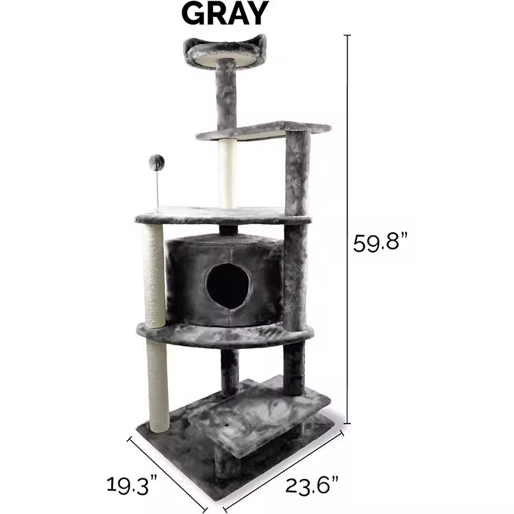 Customized Black Plush Sisal Rope Wrapped Scratching Climbing Frame Tree