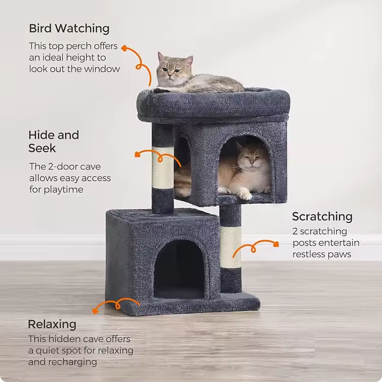 Customized Dark Grey Plush Modern Cat Tree Tower Toys