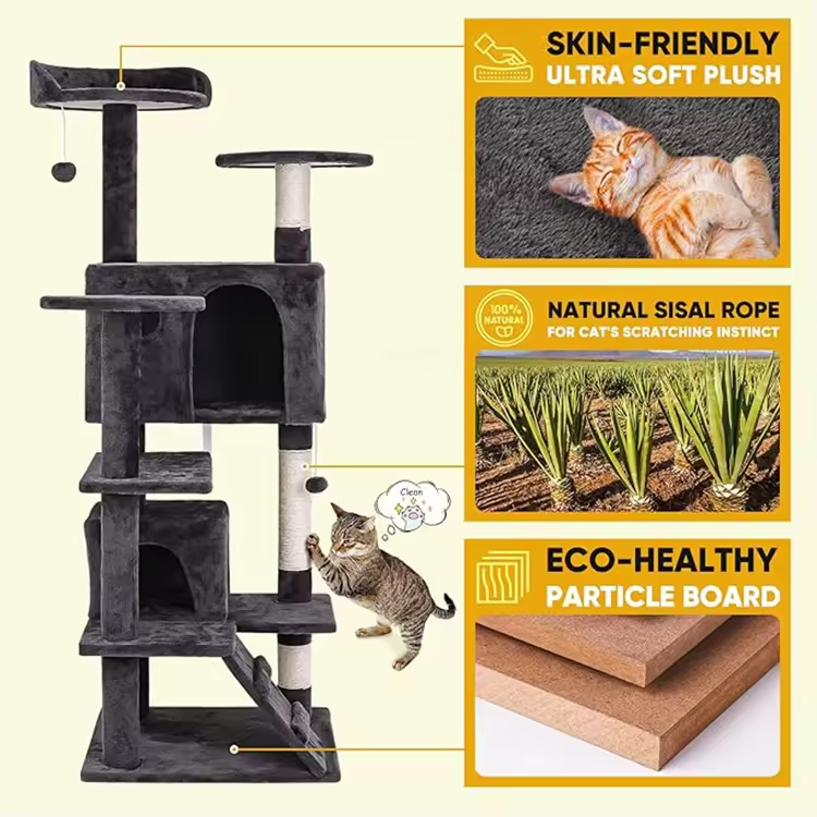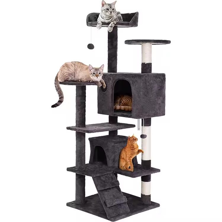 Dark Grey Velvet Large Multi Level Huge Cat Tree Tower