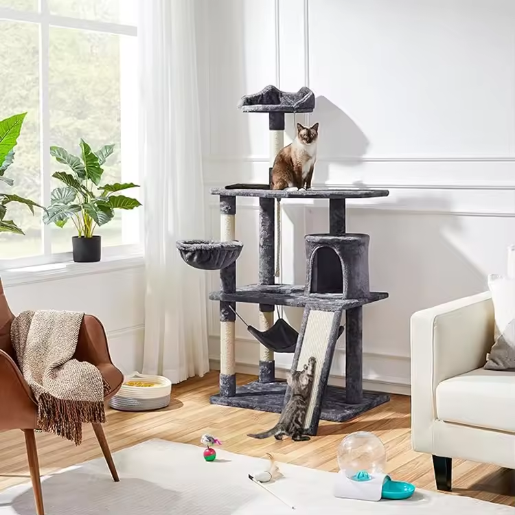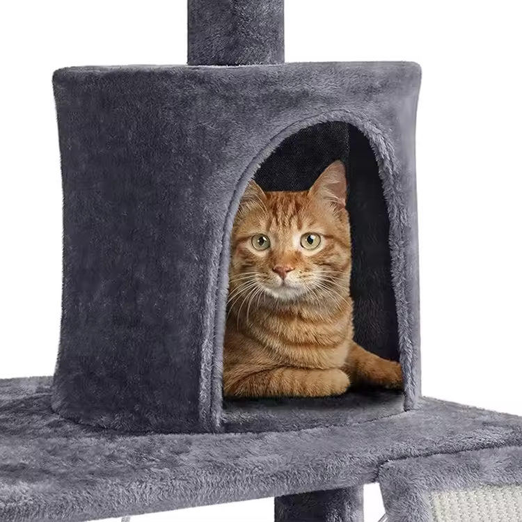 Factory Grey Plush Large Cat Ear Tree House Indoor Climbing Frame Toys