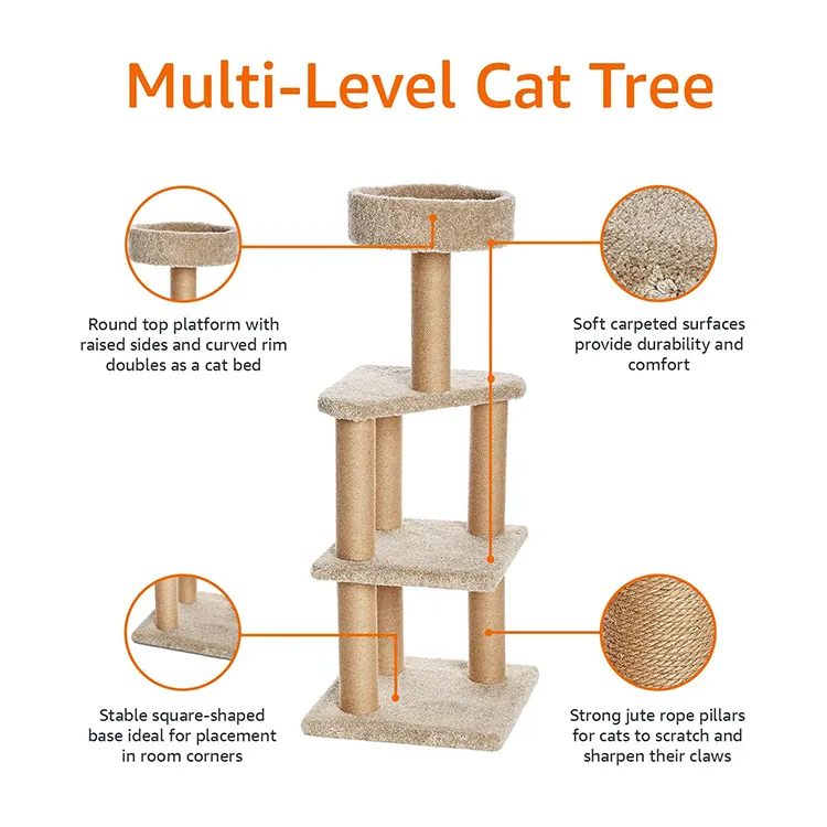 Factory Pet Beige Cat Scratching Tree Condo With Sisal Scratching