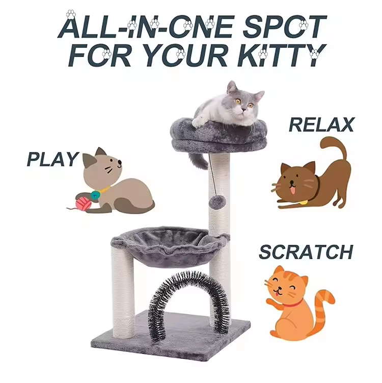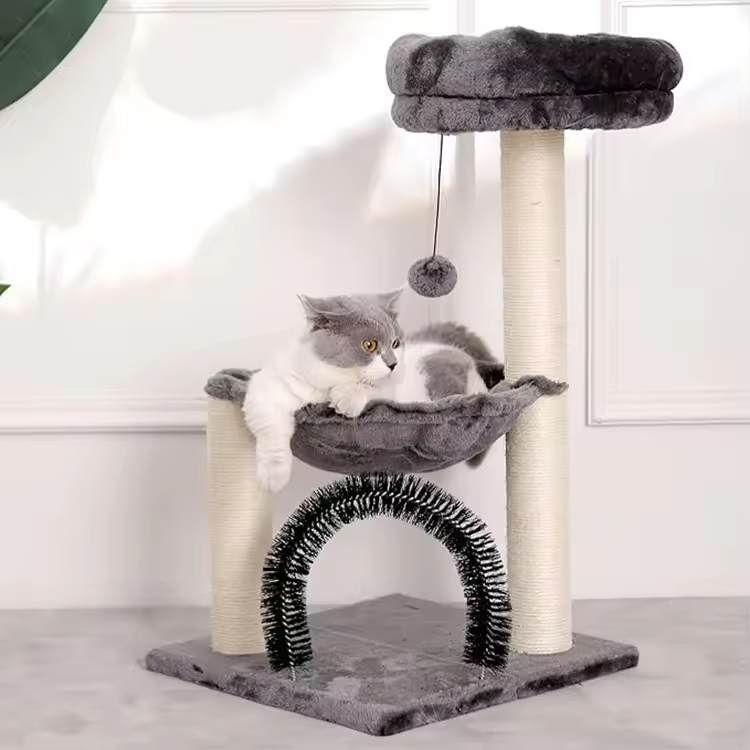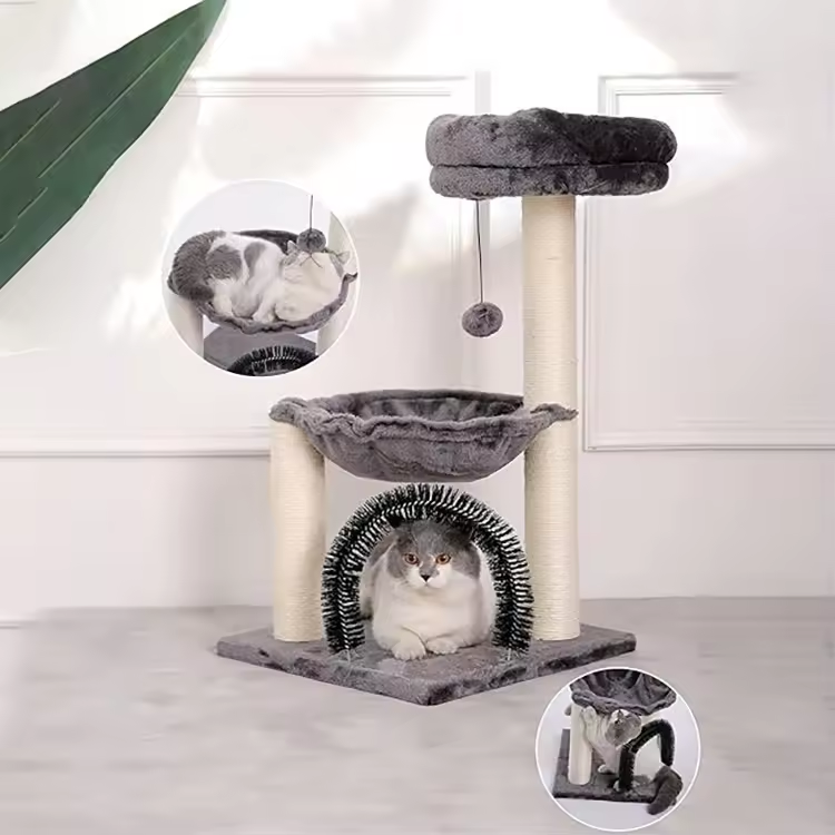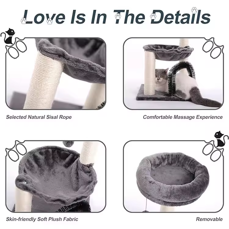 Grey Plush Scratcher Sisal Condo Luxury Cat Tree Tower With Ball