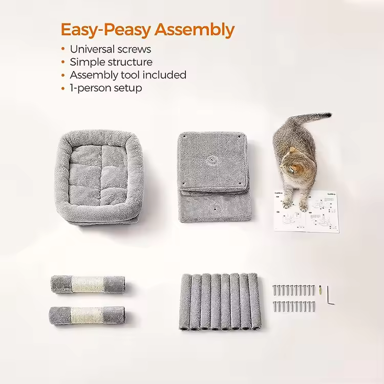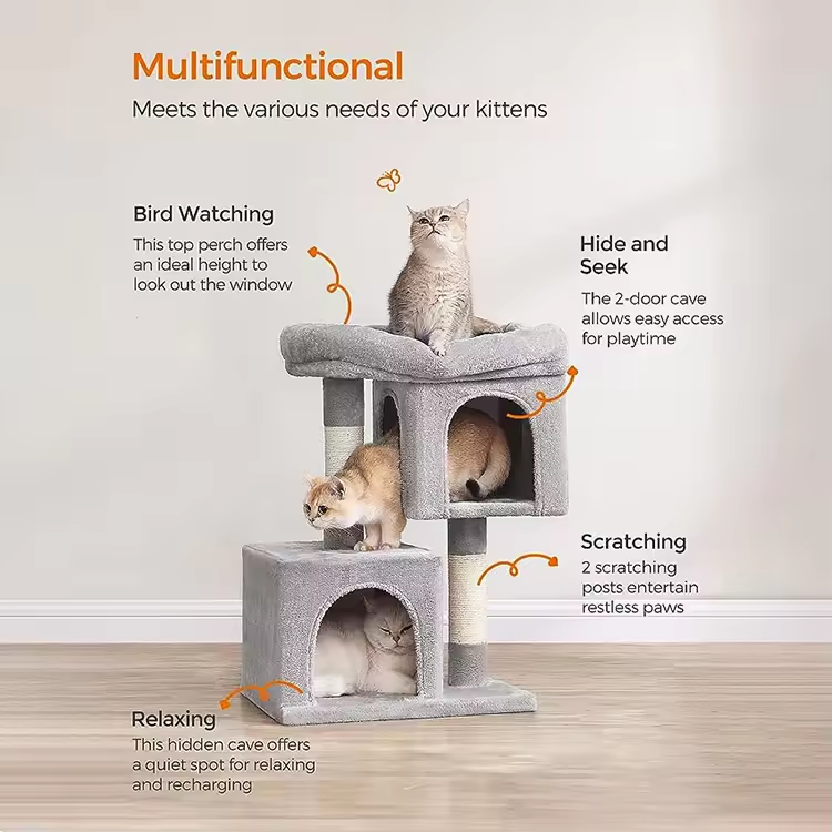 Large Grey Plush Cat Tree House Indoor Climbing Frame