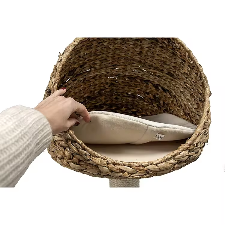 Log Color Rattan Cat Climbing Scratching Tree Condo With Scrapers And Bed