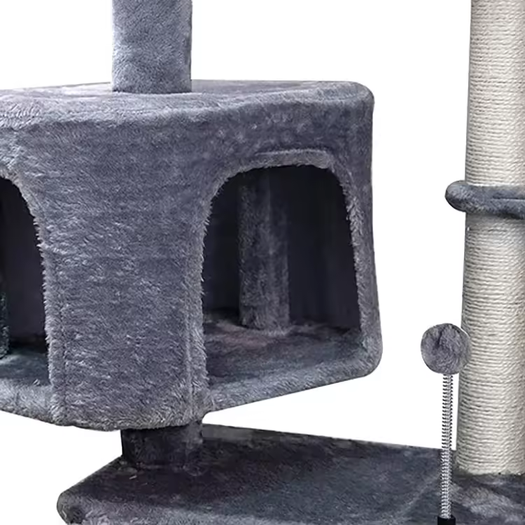 Modern Black Plush Climbing Cat Tree House Multilayer Tree Tower