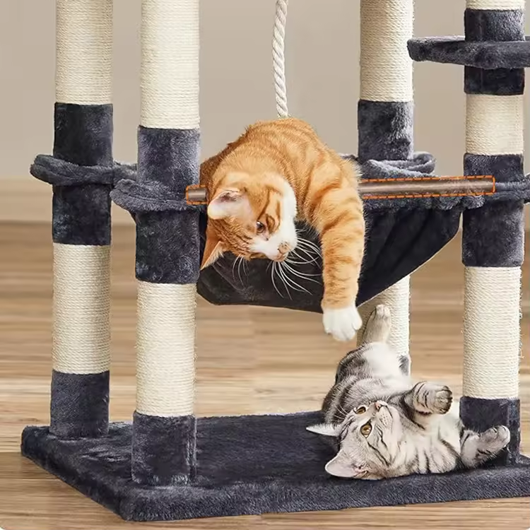 Modern Black Velvet Wooden Sisal Rope Large Cat Tree Tower