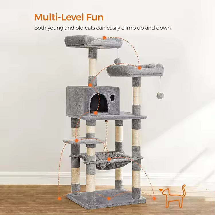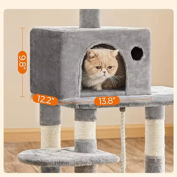 Modern Black Velvet Wooden Sisal Rope Large Cat Tree Tower