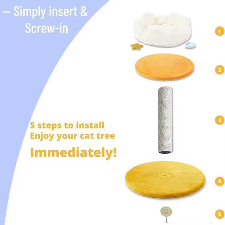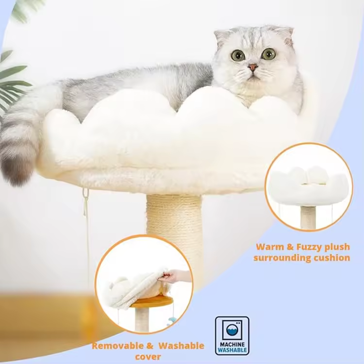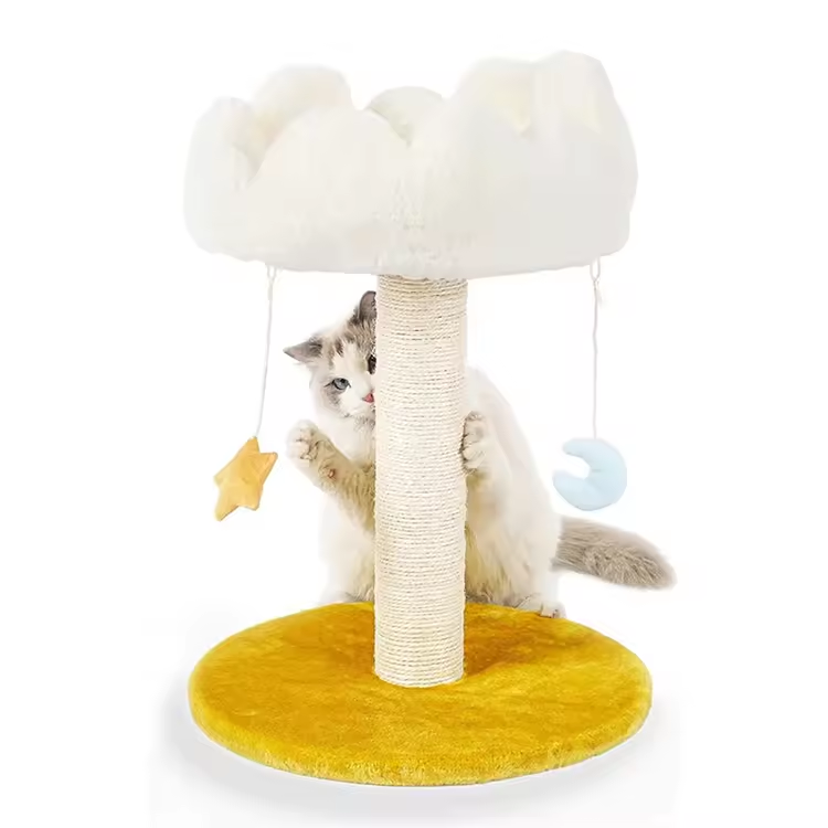 Modern White Short Plush Moon Star Climbing Tree House Multilayer For Cats