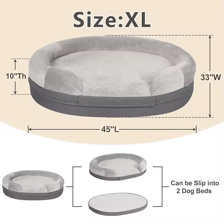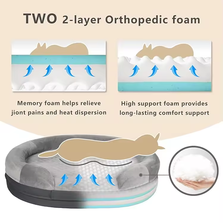 New Luxury Fashion Grey Plush Orthopedic Portable Pet Bed