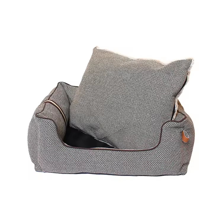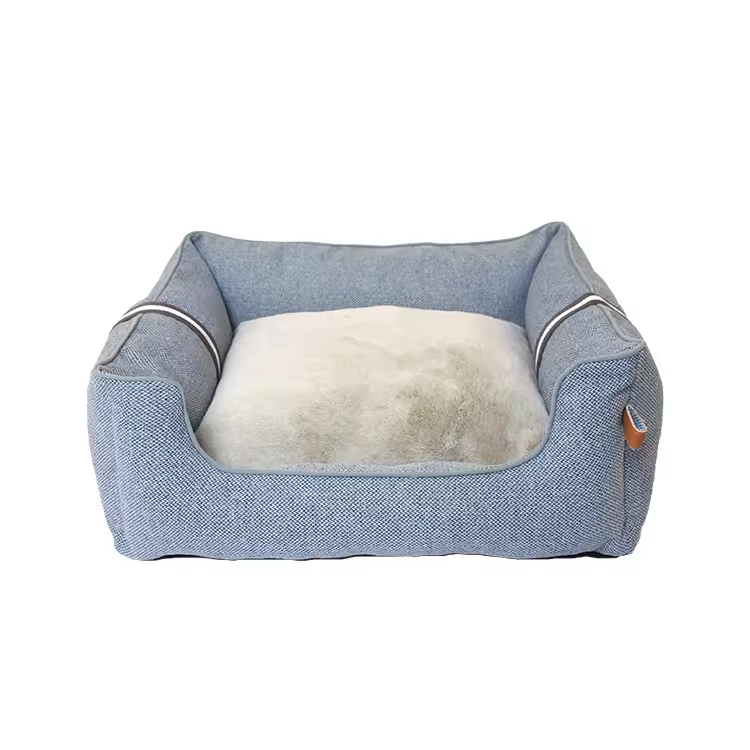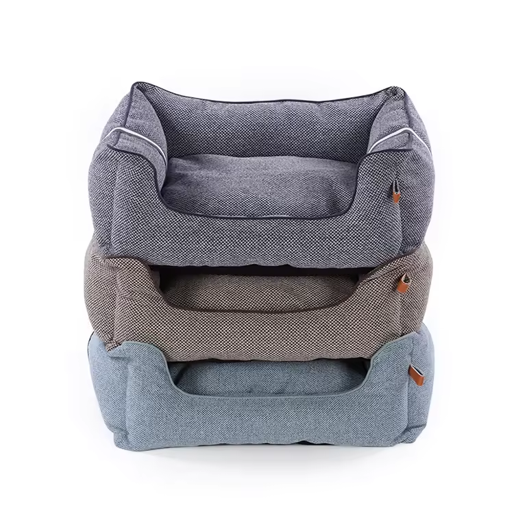 Washable Cover Blue Linen Jacquard Square Deluxe Pet Bed